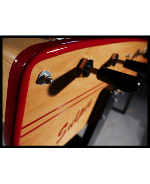 Le baby-foot Sulpie Evolution est un vrai baby-foot au prix très compétitif pour sa qualité : c’est le fruit d’un savoir-faire ancien et du choix de matériaux de qualité. Ainsi, le babyfoot Sulpie Evolution est certainement le meilleur rapport-qualité du marché. De plus, si vous souhaitez le personnaliser, cela se fait très facilement et pour la plupart des éléments sans frais supplémentaires (hors frais de teinte/laque sur le meuble, ainsi que certaines options esthétiques). Si l’on s’attend à retrouver les mêmes sensations et les mêmes souvenirs qu’au café du coin, le babyfoot Sulpie Evolution Rubis est le « premier prix » des babyfoot de qualité.