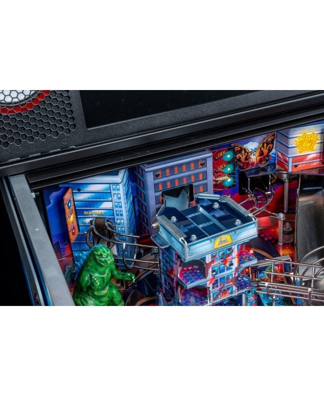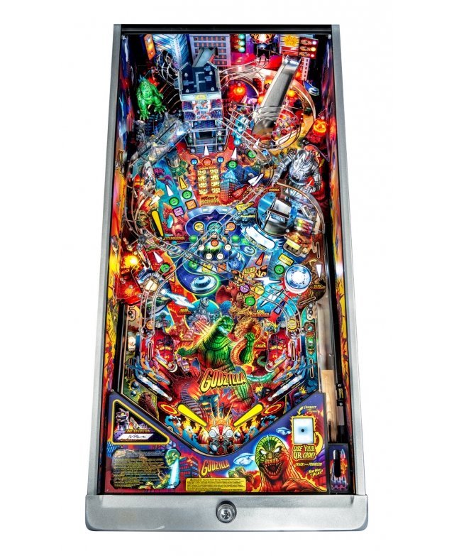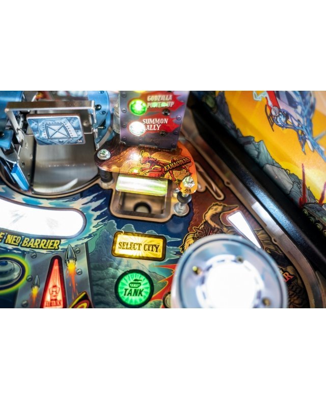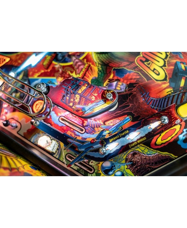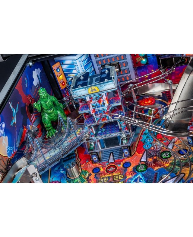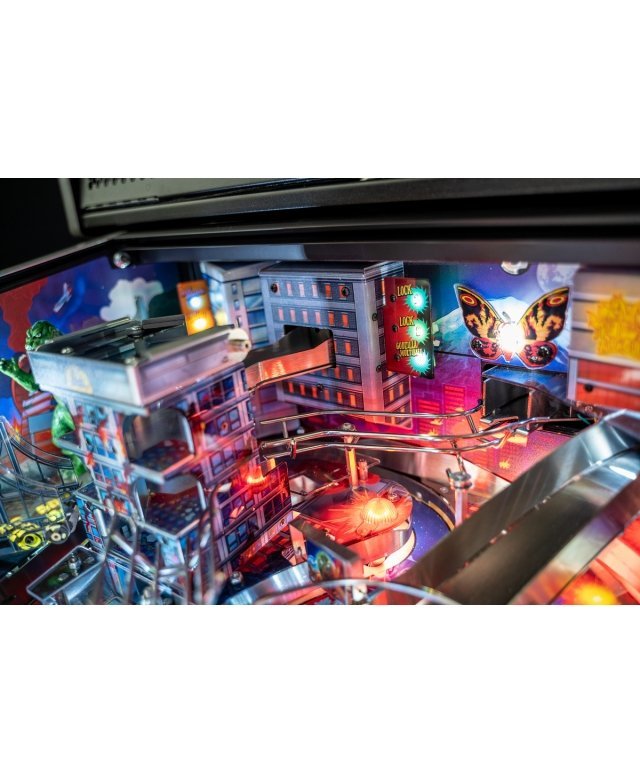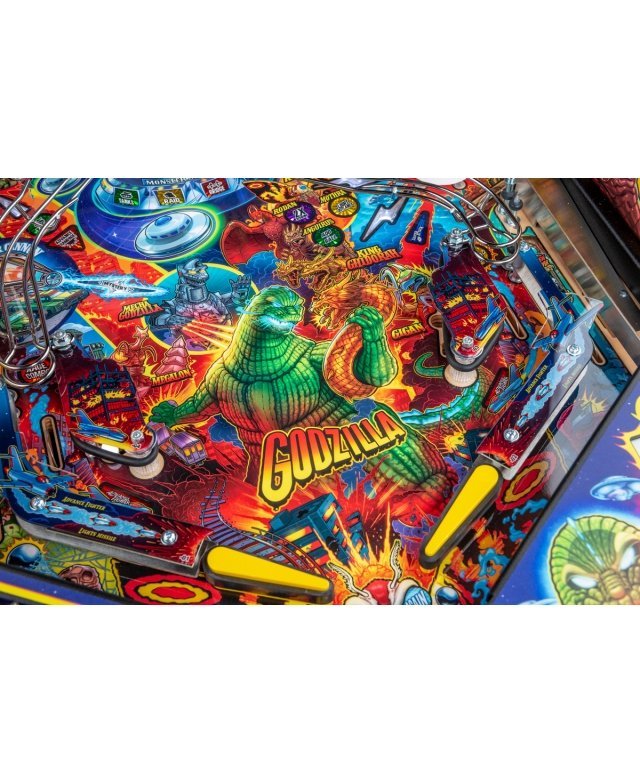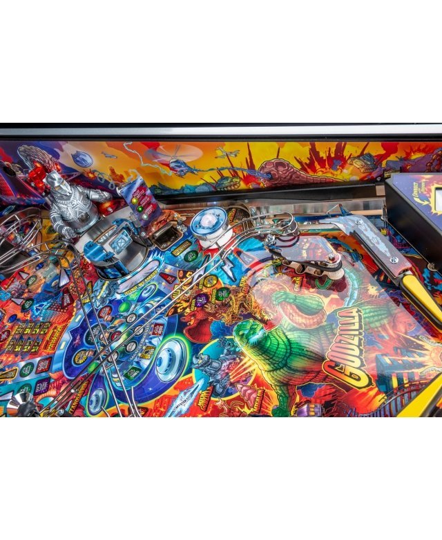 Le chaos et la destruction sont au rendez-vous sur le plateau de jeu avec le Godzilla multiball, que l’on démarre en tirant l’un des différents coups dans et à travers le gratte-ciel situé au centre. Dans les modèles Premium et LE, un moteur actionne le gratte-ciel, déviant les balles à travers chacun de ses cinq étages pendant qu’il s’effondre, pour finalement bloquer trois balles sur son toit. Le terrain de jeu Premium/LE comporte également une passerelle qui s’effondre. Cette rampe animée est gardée par un Godzilla moulé sur mesure et peut détourner les boules vers le flipper ou directement sur le terrain de jeu pendant le multi-ball Bridge Attack.