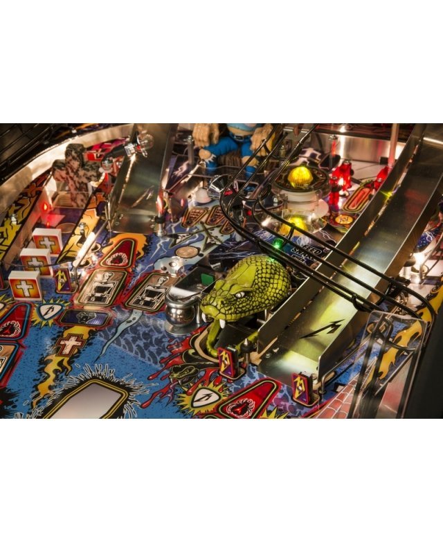 Avec le Flipper Metallica, amusez-vous au son des riffs et des mélodies titanesques de Metallica. Ce flipper, avec un groupe de rock connu mondialement, se joue dans une ambiance de feu. L’arène de jeu adopte un style unique, avec un dessin sous forme de bande-dessinés, qui décorent le plateau de jeu comme l’extérieur de la caisse. Le flipper diffuse des titres très connus comme One fade to black ou Master on Puppets. Le plateau de jeu est illuminé par des lumières multicolores clignotantes, et est doté d’impressionnantes figurines de jeu tels le serpent Snake ou la chaise électrique.