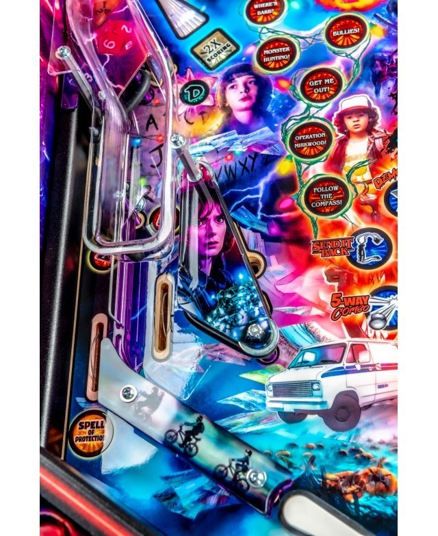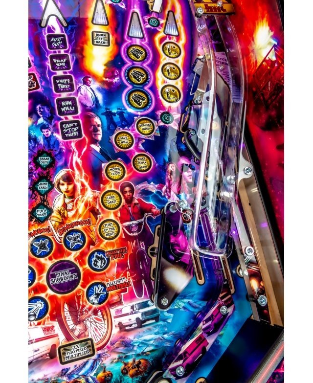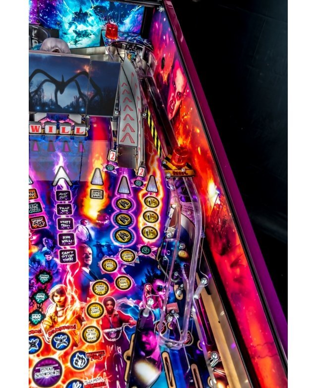 Découvrez ces forces terrifiantes, à Hawkins dans l’Indiana, mettent cette petite ville « sens dessus dessous » grâce à des éléments surnaturels, des observations étranges et des secrets du gouvernement. Le flipper Stranger Things plonge le joueur dans une quête pour percer les mystères extraordinaires et les expériences secrètes du gouvernement qui se déroulent au laboratoire national de Hawkins. Le gameplay consiste à révéler les origines cachées des événements surnaturels qui se produisent autour de la ville, y compris l’apparition d’une fille connue sous le nom de « Eleven » avec des capacités de télékinésie. La bille est déchaînée quand Mike, Lucas, Dustin, Will, Joyce et le chef de la police Jim Hopper aident « Eleven » à fermer la porte dimensionnelle.